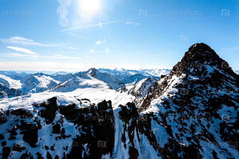 Прекрасный вид на горы Альп в солнечный зимний день, Австрия, Штубай, курорт Штубайер Глетшер