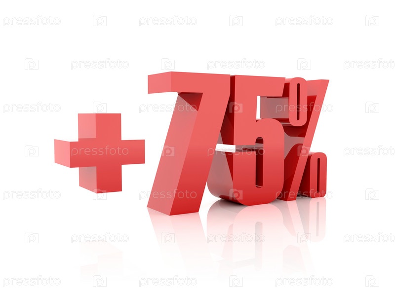 Плюс 75 процентов. Концептуальная 3D-иллюстрация