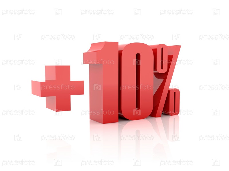 Плюс 10 процентов. Концептуальная 3D-иллюстрация