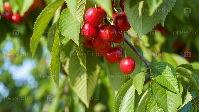 Спелые черешни на дереве