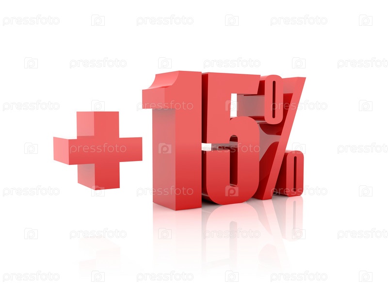 Плюс 15 процентов. Концептуальная 3D-иллюстрация