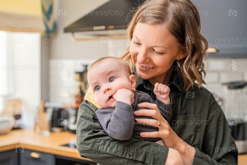 Мама с ребенком на руках на кухне кухня