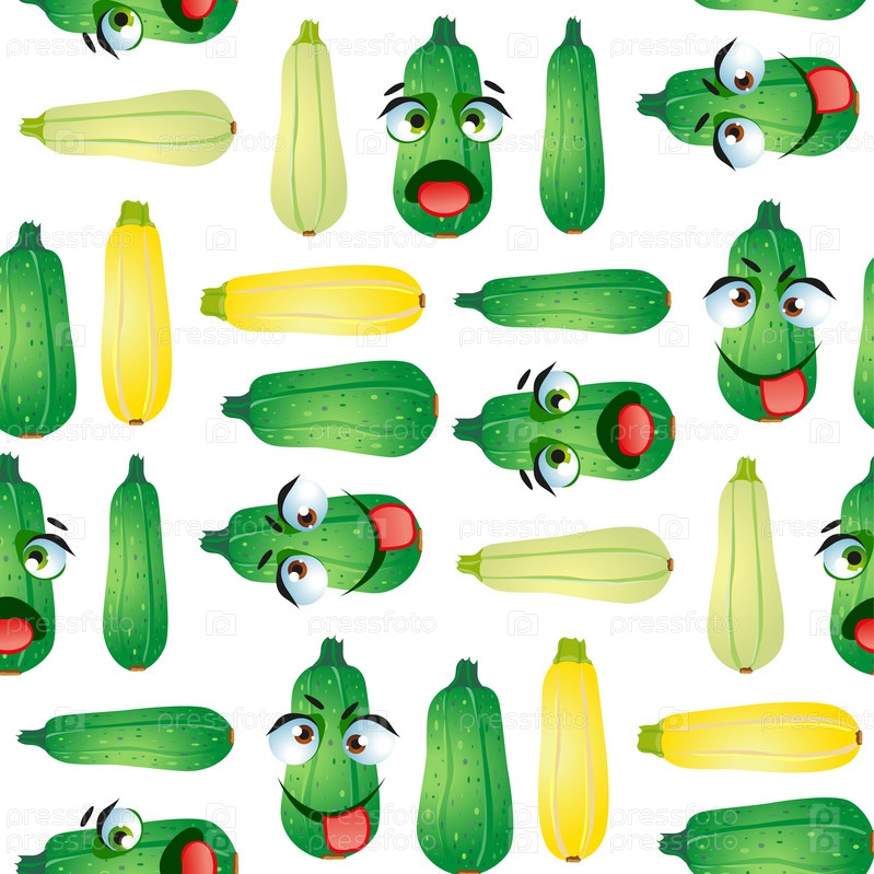 Бесшовные овощные кабачки. Смешные милые лица персонажей
