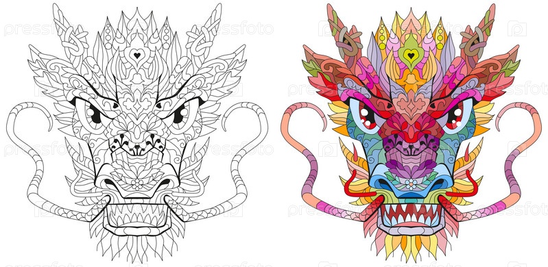 Голова дракона в стиле зентангл, стилизованная под дизайн футболки, татуировку и другие украшения