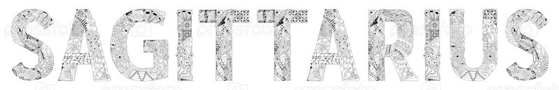 Художественный дизайн ручной росписи. Ручной рисунок слова "Стрелец" для футболки и раскраски