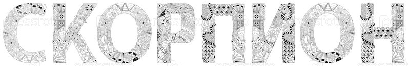 Художественный дизайн ручной росписи. Ручной рисунок слова Скорпион на русском языке для футболки и других украшений