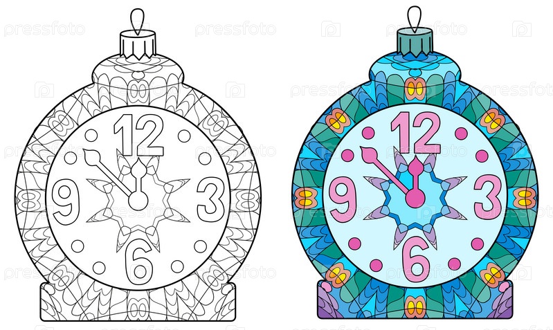 Zentangle стилизованные рождественские украшения. Ручной рисунок векторного ожерелья. Шар для покраски и крашенный образец