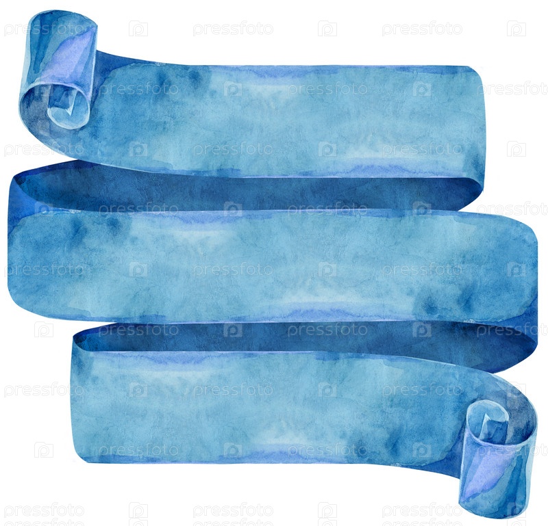 Акварель винтажная голубая лента. Ручная роспись баннеров на белом фоне