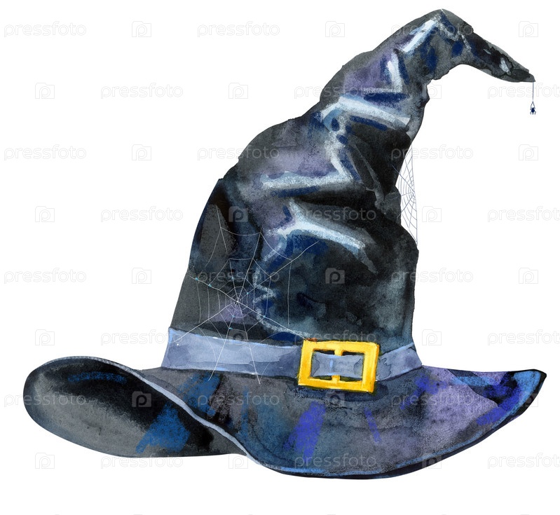 Симпатичная красочная акварельная иллюстрация персонажей шляпы ведьмы, изолированная на белом фоне. Отлично подходит для украшения Хэллоуина
