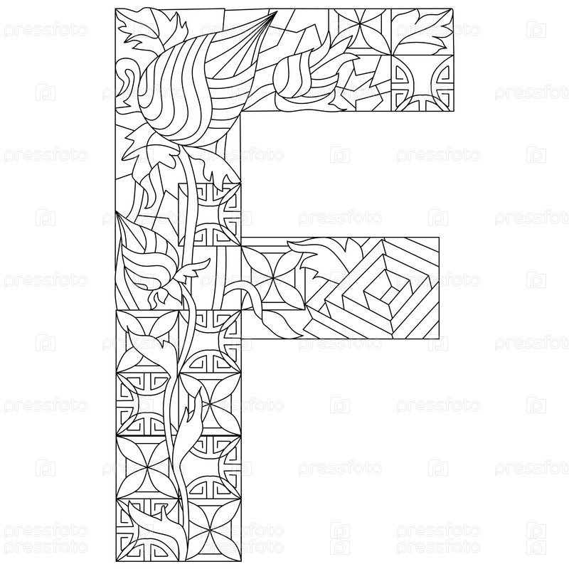 Монограмма буквы F для окраски, гравировки. векторная иллюстрация