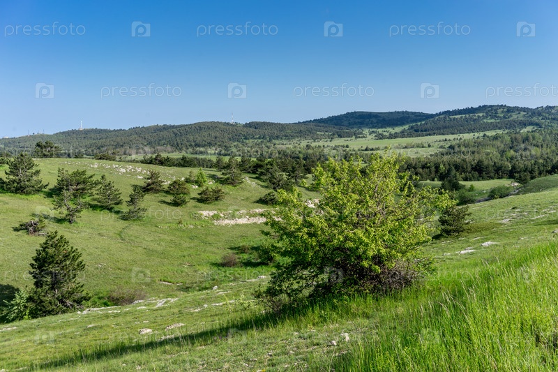 Пейзаж с холмами, покрытыми зеленой травой