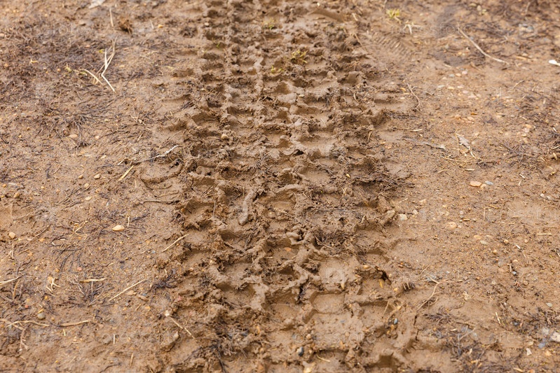 Колея автомобиля в грязи, бездорожье