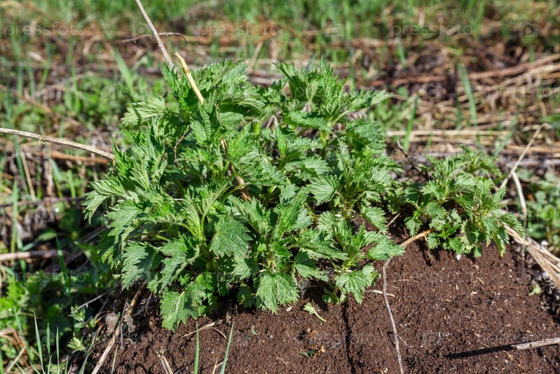 Пучок обыкновенной крапивы в земле