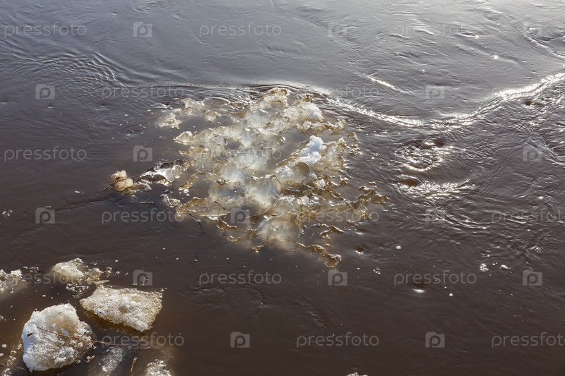 Весной льдина дрейфует вниз по течению. весенний паводок