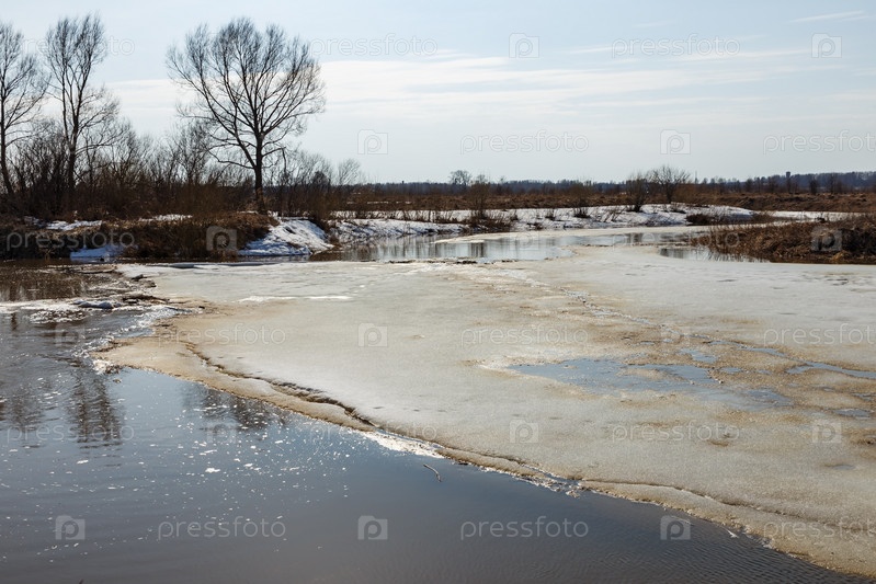 Весенний ледоход на реке. льдина, плывущая по воде. Весеннее таяние снега и половодье