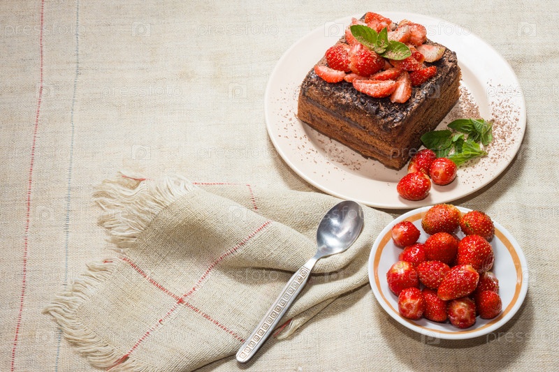 Домашняя выпечка. Шоколадный торт с клубникой и мятой. Клубника с грядки