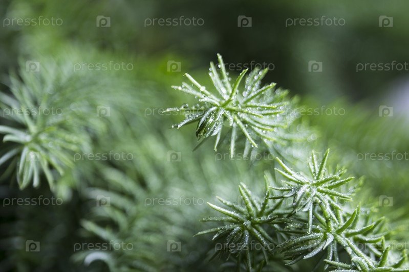 Ветвь араукарии хвойного дерева с каплями дождя и свежим воздухом