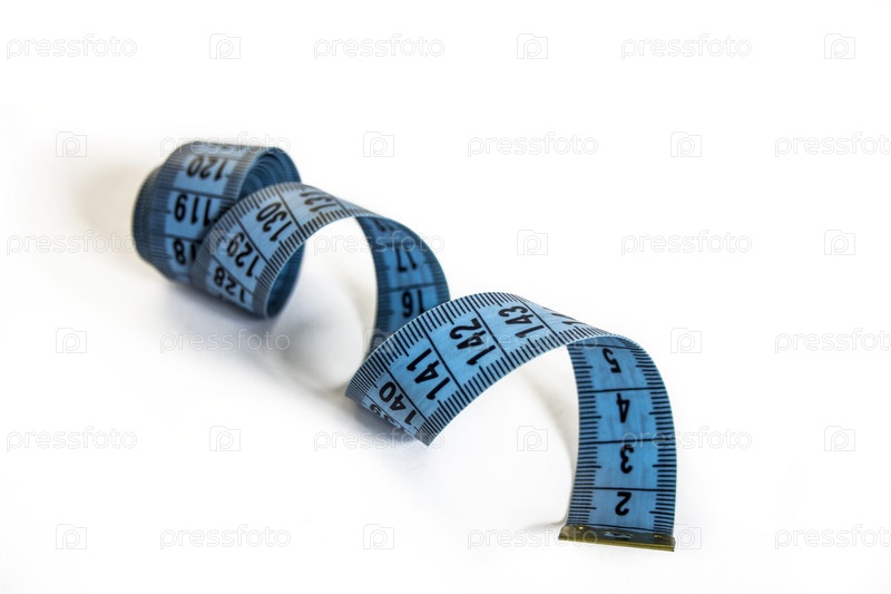 Спиральная синяя измерительная лента. Изолированные на белом фоне