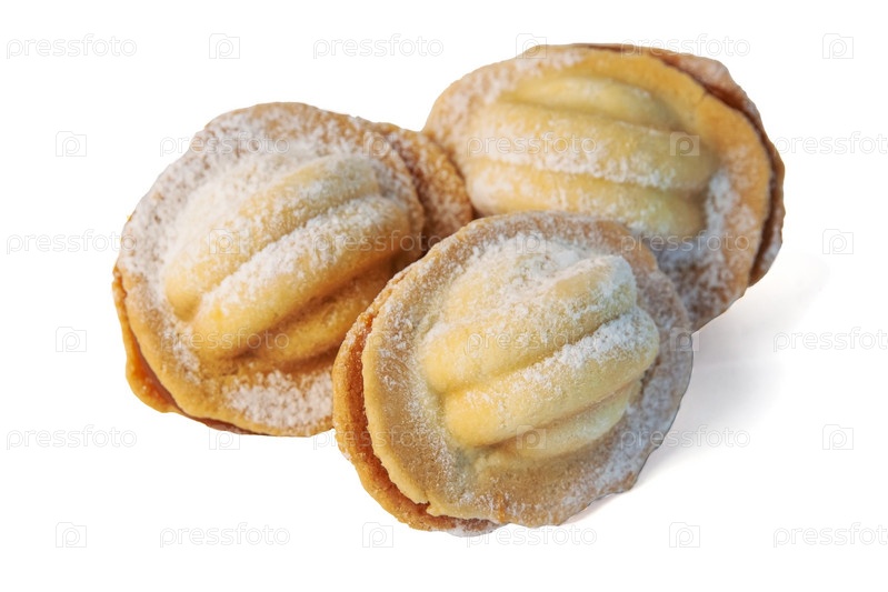 Русское традиционное домашнее печенье Орехи. Орешки с вареной сгущенкой, изолированные на белом фоне