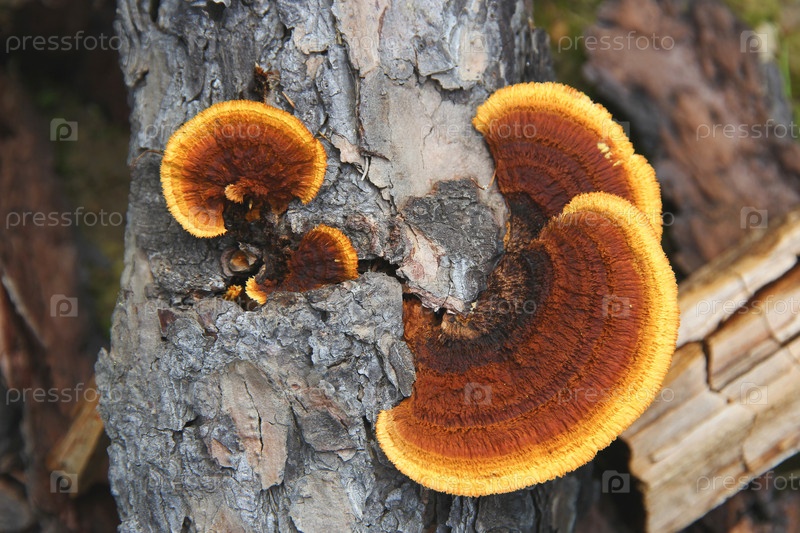 Ярко-оранжевые древесные грибы