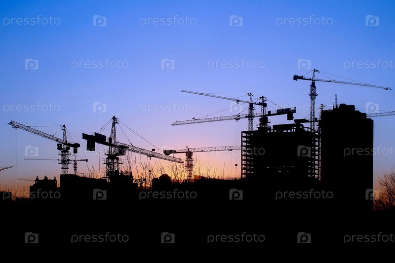 Строительный пейзаж на фоне заката