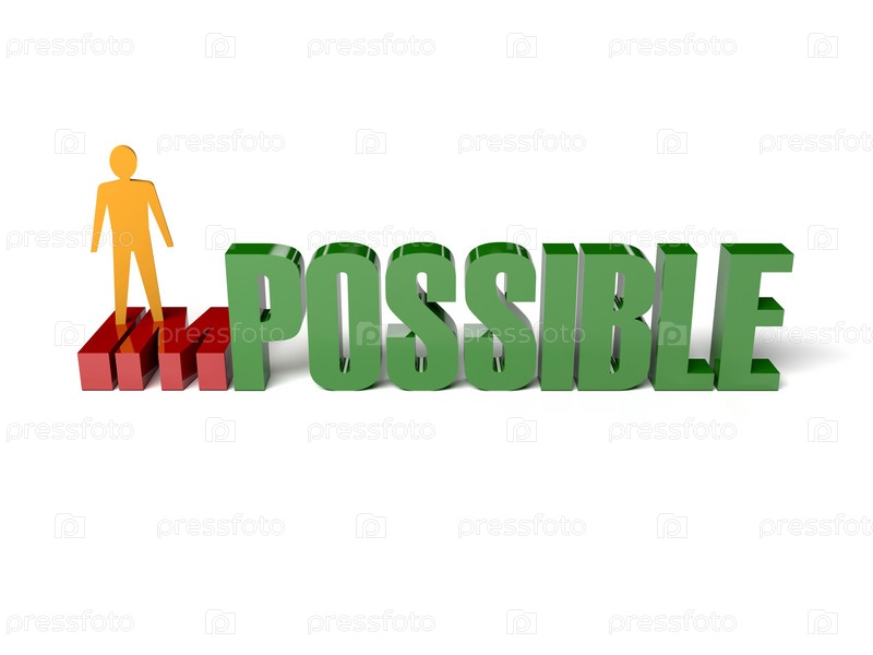 Человек превращает слово 'невозможно' в 'можно'. Концептуальная 3D-иллюстрация