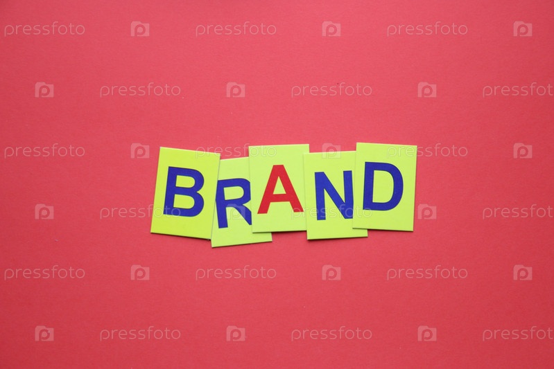 Разноцветные буквы идеи бренда лежат на красном столе