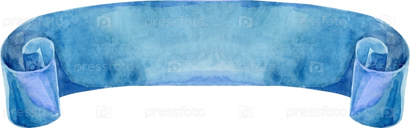 Акварель винтажная голубая лента. Ручная роспись баннеров на белом фоне