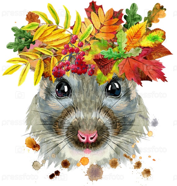 Милая крыса для графики на футболках. Акварельная иллюстрация крысы