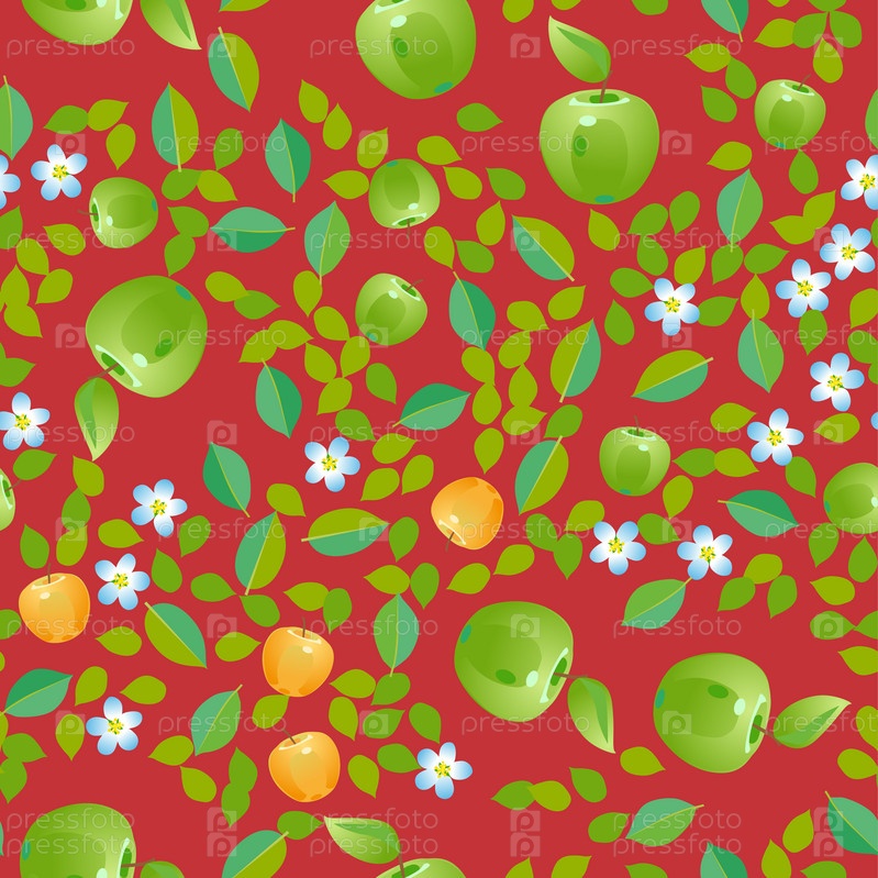 Бесшовный рисунок фруктового яблока. Смешные милые лица персонажей