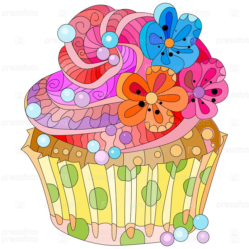 Векторный кусок пирога с абстрактными орнаментами.Ручная иллюстрация для футболки в стиле зентенгл, каракули