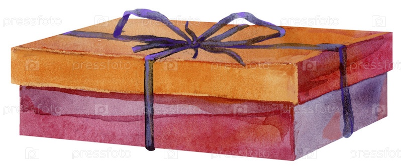 Акварельная картина подарка с бантиком