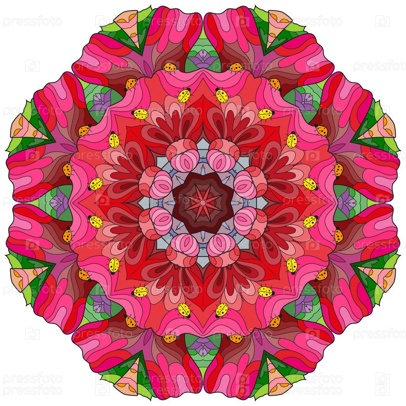Декоративные круглые украшения. Необычная форма цветка. Восточный вектор, схемы антистрессовой терапии. Переплетение элементов дизайна. Вектор логотипов йоги