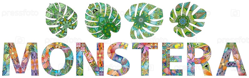 Художественный дизайн ручной росписи.Ручное изображение слов MONSTERA для футболок и других украшений
