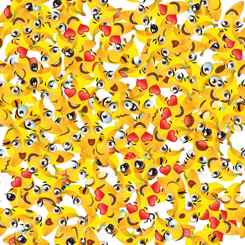 Бесшовный узор из экзотических фруктов банан. Смешные милые лица персонажей