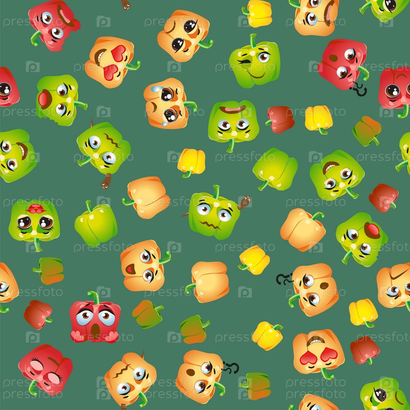 Бесшовный фон Болгарский перец. Смешные милые лица персонажей