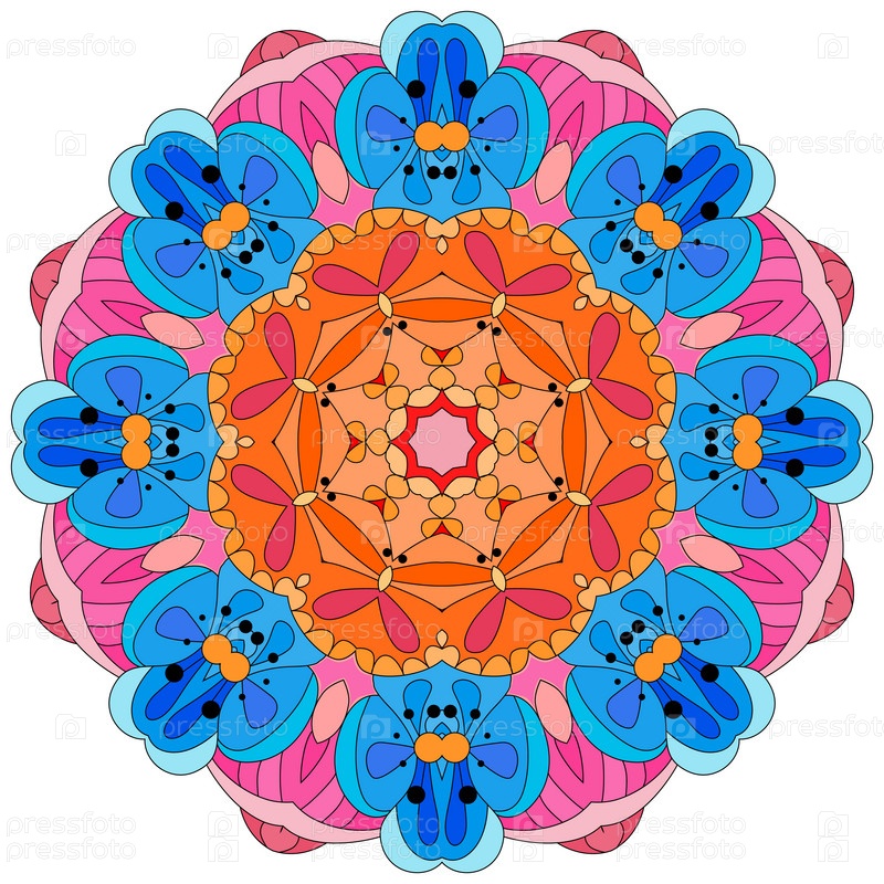 Декоративные круглые украшения. Необычная форма цветка. Восточный вектор, схемы антистрессовой терапии. Переплетение элементов дизайна. Вектор логотипов йоги