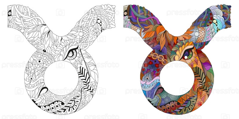 Знак зодиака Телец, концепт-арт астрологии. Дизайн татуировки. Набор цветов и контуров