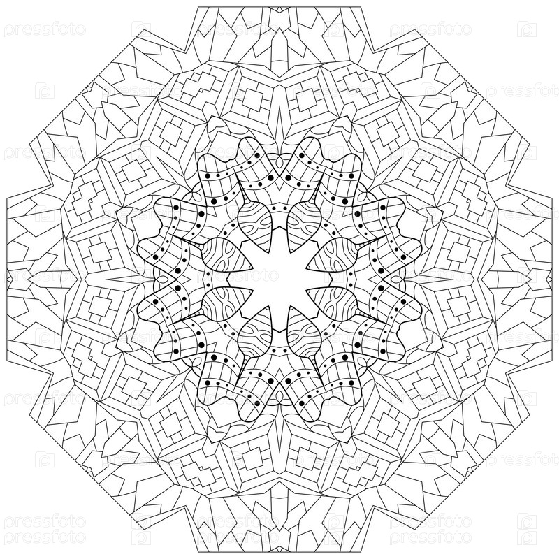 Ручно нарисованная мандала зентагле для покраски страниц