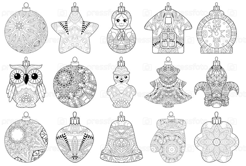 Zentangle стилизованный рождественский набор украшений. ручной рисунок векторного кружева