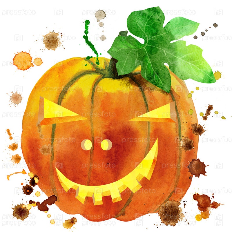 Акварельная тыква на Хэллоуин. Ручная роспись резные лица тыквы, изолированные на белом фоне. Праздничная иллюстрация для дизайна, печати или фона