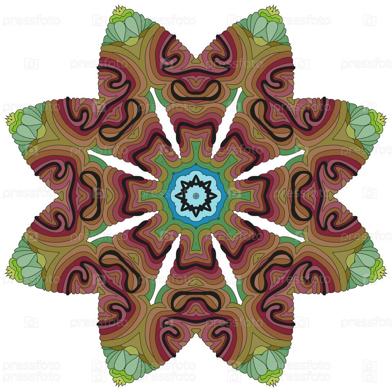 Декоративные круглые украшения. Необычная форма цветка. Восточный вектор, схемы антистрессовой терапии. Переплетение элементов дизайна. Вектор логотипов йоги