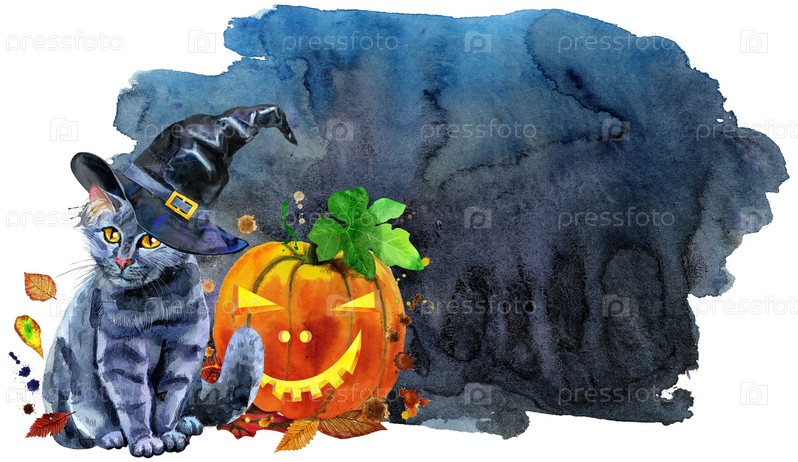Милый черный кот рядом с тыквой на Хэллоуин на черном фоне