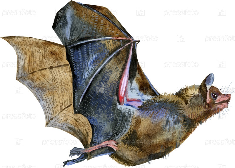 Акварель Хэллоуин иллюстрация летучей мыши в полете. Отличный элемент страшной поздравительной открытки, приглашение на темную ночную вечеринку, костюм, упаковка, узор, текстильный дизайн