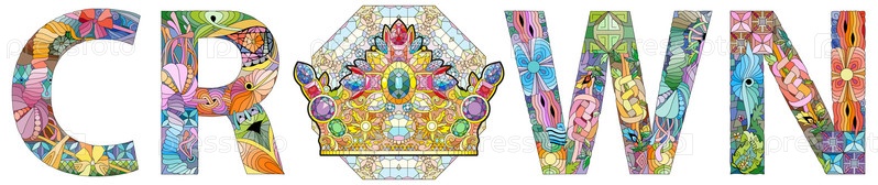 Художественный дизайн ручной росписи.Ручная рисование слов CROWN для футболок и других украшений