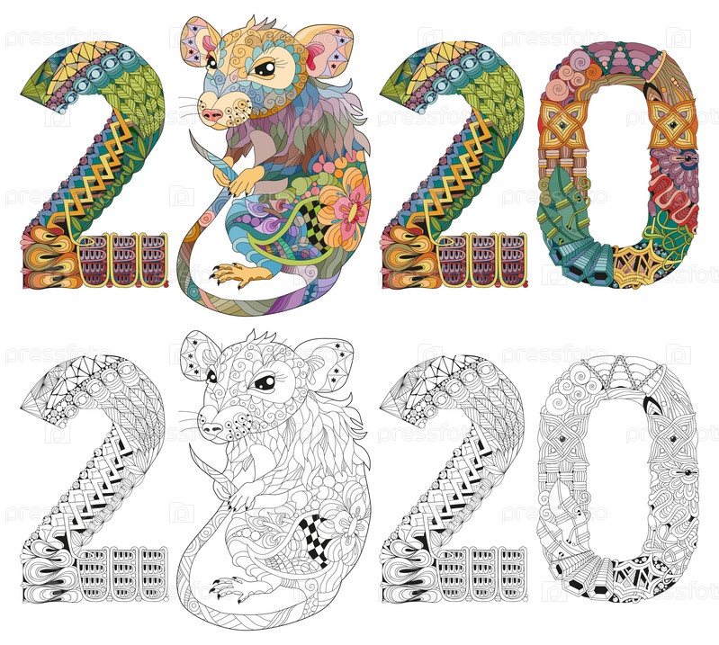 Zentangle стилизованная крыса номер 2020. ручной рисунок вектора кружева