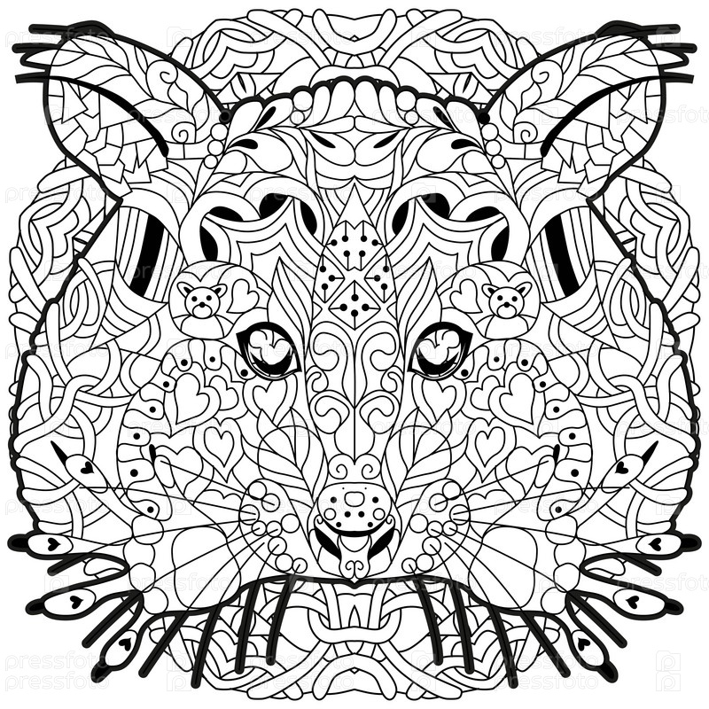 Zentangle стилизованный енот с мандалой. Ручно нарисованная образцовая векторная иллюстрация на белом фоне. Эскиз для окрашивания для взрослых, плакаты, татуировки