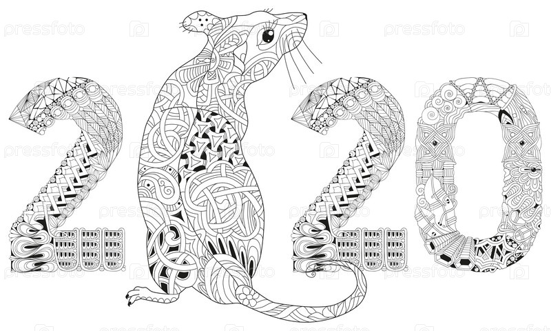 Zentangle стилизованная крыса номер 2020. ручной рисунок вектора кружева