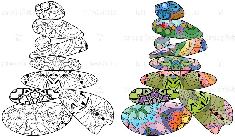 Векторная иллюстрация баланса из декоративных камней для раскраски. Набор цветов и контуров