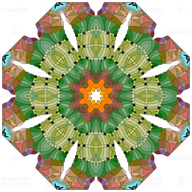 Декоративные круглые украшения. Необычная форма цветка. Восточный вектор, схемы антистрессовой терапии. Переплетение элементов дизайна. Вектор логотипов йоги